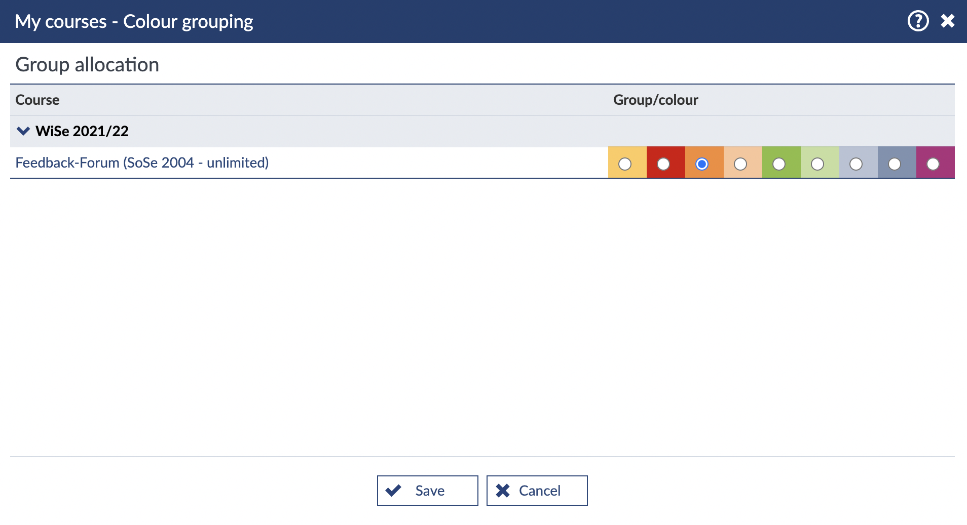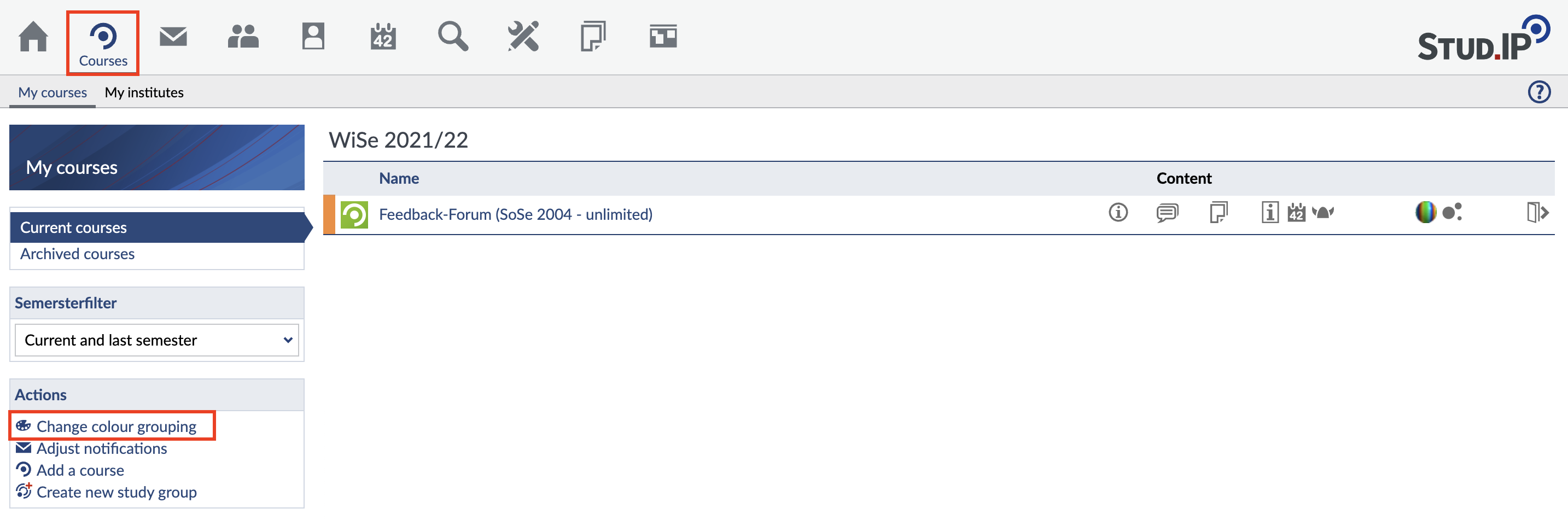 Courses with the same colour will subsequently be grouped beneath one another in your course overview.