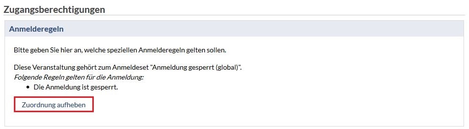 Normaly courses get automatically borrowd from the UniVZ. After that synchronisation the application within Stud.IP is normally closed. A course will be activated by clicking the butte "remove attribution". The application to this course is now open to all students.