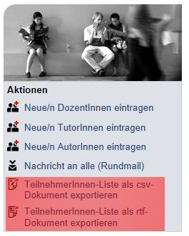 The list can be exported either as an rtf-document or as a csv-document.