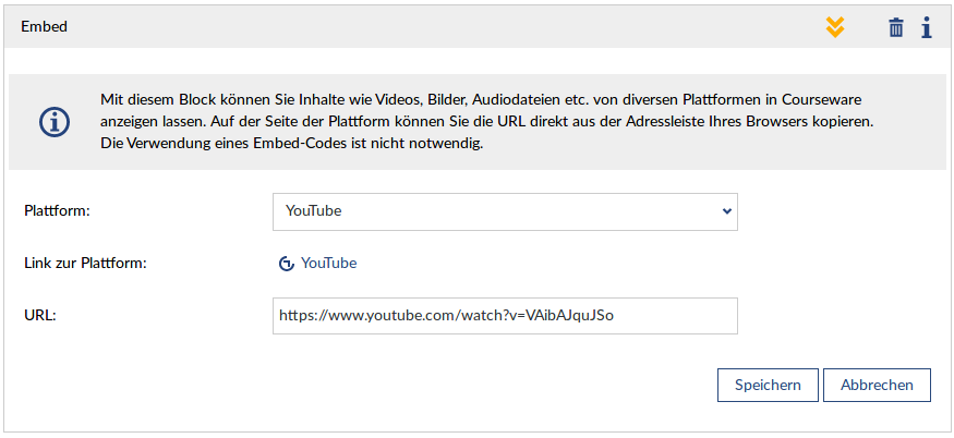 Mit diesem Block lassen sich Inhalte von diversen Plattformen in Courseware einbinden.